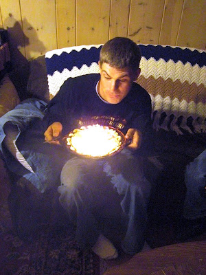 I really didn't put THAT many candles on his pie - it just looks like the whole thing's on fire! :)